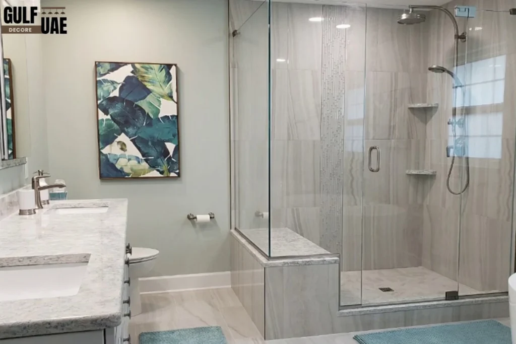 Don’t put any obvious barriers between your dry and damp sections. Frameless glass walls preserve the open, contemporary vibe that is ideal for modern homes in Dubai while allowing light to flow through the room.